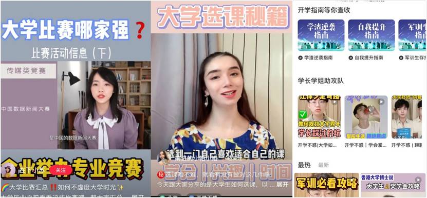 来自国内外知名高校的小红书创作者们在学习、社交、社会实践等方面提供了实用经验。北京电影学院的“前进的小帕小姐”介绍了选课的注意事项,提醒新生注意课程搭配。厦门大学的“93老叔叔” 分享了社交技巧,帮助新生积极投身校园活动。清华大学创作者“在下小苏”则介绍了大学时期含金量较高的创业比赛,有利于拓展兴趣,开阔眼界。