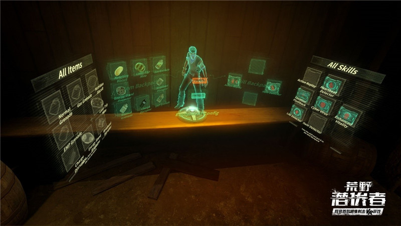 对决开始前,每位玩家都需要从掠夺者和守卫者独有的武器库、技能库和道具库中挑选3把枪械、4个技能和8个道具进入战场。每把枪械都有不同的射程、威力、弹夹容量、精准度和后坐力,不同技能或道具的效果、生效范围等也都各不相同。枪械、技能和道具间的搭配存在丰富的策略空间。在寻找隐身敌人的过程中不断摸索、拓展自己的策略空间,是这款隐身射击VR游戏最具乐趣的体验之一。