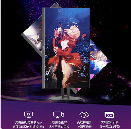 拾光纪SA27D0桌面智慧屏采用当下最流行的27英寸显示器尺寸,一屏全览,满足影音娱乐、游戏、大屏办公等多个需求,开创影娱体验新纪元。它内置桌面OS智能系统,可以脱离主机安装各类APP,同时支持无感同/投屏,实现手机、显示屏的随心切换。值得一提的是,独家类纸护眼技术能有效避免长时间使用显示器所带来的视觉疲劳。