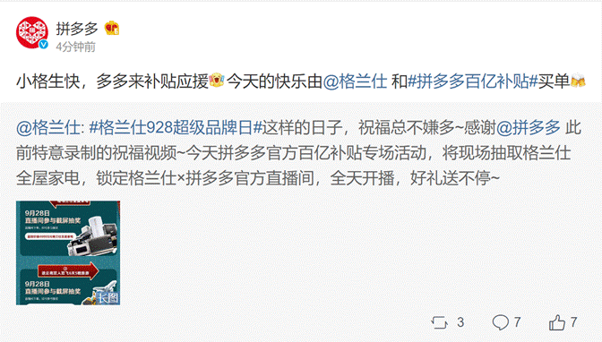 “此次联合拼多多打造‘超级品牌日’,一是向消费者展示格兰仕的发展经历和产品实力,教大家挑选合适的家电产品,二是感谢拼多多消费者一直以来的支持,我们希望以最大的诚意,来回报平台消费者的关爱。”刘畅表示。