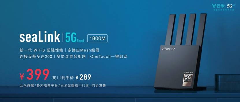 可以说,seaLink 5G Fixed为5GIoT全屋互联而生。seaLink 5G Fixed 3000M售价999元,seaLink 5G Fixed 1800M售价为399元,双11更有优惠价。