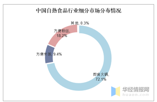 A面是自热食品赛道竞争激烈,B面则是国内庞大的自热食品行业市场待开发,据食品工业网数据显示,2019年我国自热食品市场规模约为35亿元,到2020年规模有望达到40亿元。从细分市场看,与自热米饭、方便粉丝品类比起来,自热小火锅凭借72.1%的占比,成为第一大自热食品品类。