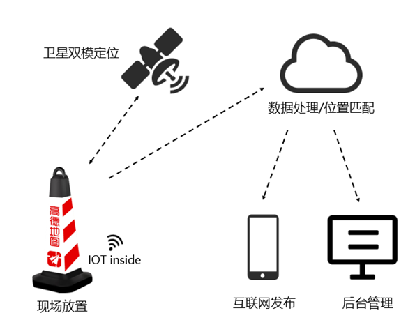 “智慧锥桶”采用卫星双模定位,通过对传统锥桶进行物联网化改造,并与高德地图无缝对接,投入使用后,不再需要人工报送,“智慧锥筒”会自动采集道路占道施工、封闭等信息,通过高德地图引导车主提前躲避施工路段或减速慢行。
