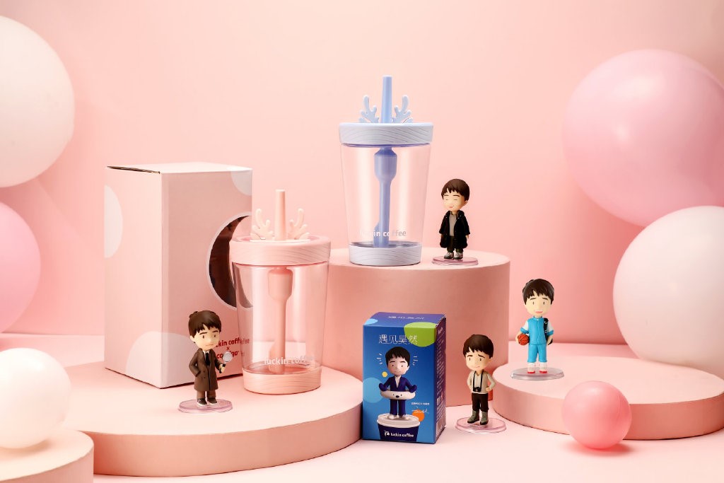 除了IP文创公司纷纷入局外,不少来自其他行业的玩家,也试图通过盲盒的形式来进行“破圈”营销,在满足用户收集乐趣的基础之上,这些企业还通过与明星联名的方式,实现显示偶像与IP文创的深入联动。例如去年咖啡品牌瑞幸在发布“小鹿茶”品牌同期宣布聘请刘昊然出任品牌代言人,同时推出购杯购卡即可收集偶像盲盒的活动,一时间收获了网络的关注。