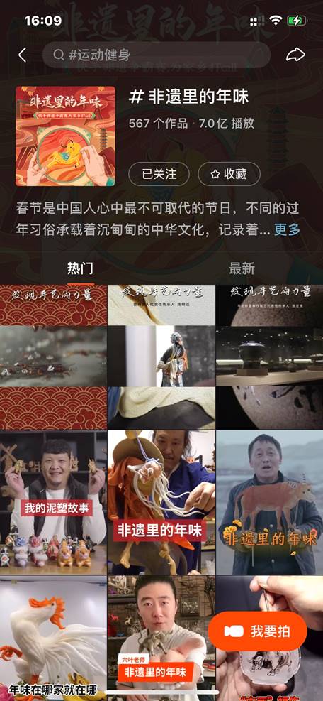 丰富多彩的非物质文化遗产展示出了中华文化的深厚与多样,近年来,快手不断利用直播、短视频的新技术、新渠道,积极探索和实践,希望能用更流行、娱乐化的方式,向年轻人传播、弘扬中华民族传统文化。
