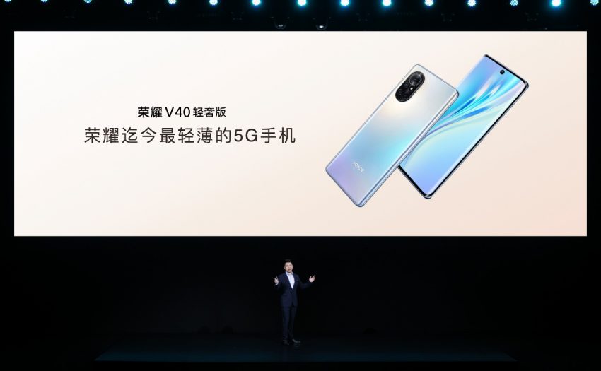 荣耀V40轻奢版在外观方面延续了V系列的设计风格,前置屏下摄像头采用居中设计,为了最大化展现产品纤薄的机身,荣耀V40轻奢版严苛控制从正面屏幕到背面电池盖间每层器件的间隙,最大化压榨机身空间,相比传统架构为手机减薄了0.2mm,使得整机的厚度降到了7.64mm,重量控制在了169g。