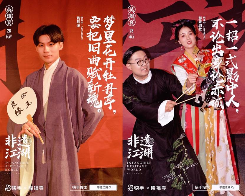 5月28日晚,作为快手“非遗江湖” 成员的首次线下集体亮相,快手还在北京隆福寺举行了一场调性十足的“非遗江湖英雄宴”,通过非遗市集+非遗艺术家表演快闪秀相结合的多元形式,打造了一个充满沉浸感的“非遗江湖”,让大众可以更加直观地近距离体验非遗文化魅力。