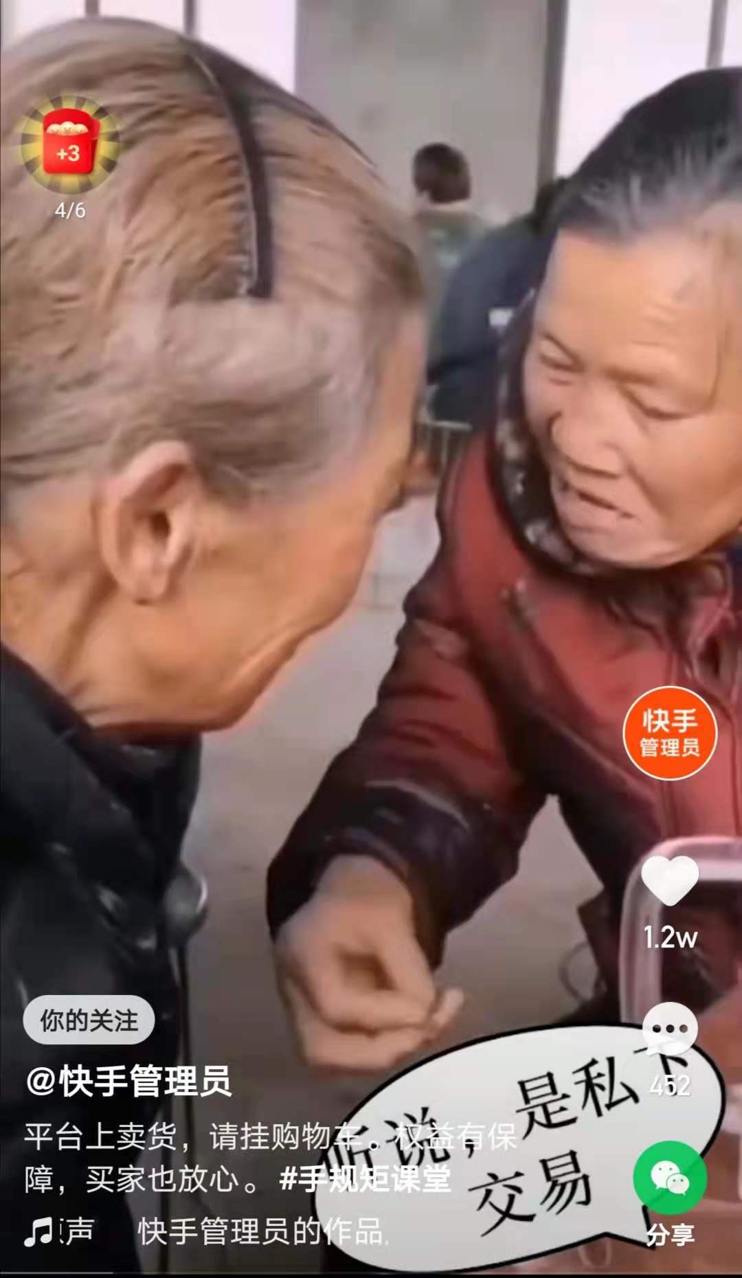 快手管理员的同学们和大部分年轻人一样,有的喜欢美食,有的喜欢旅行,有的喜欢睡觉,他们也会对着搞笑的短视频哈哈大笑,然后想一想这个视频我们能怎么拍。于是,你可以看到,在《私下交易做不得,还请老铁守规则》这一期,快手管理员用了当时网上爆火的“大妈对话”视频,放在开头,作为故事线的伏笔,再找人用方言对话,只为博取用户一笑,等待“大戏”正式登场。