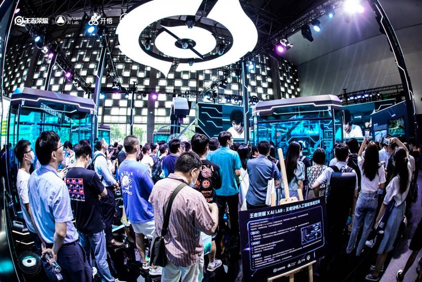 腾讯作为参展商向观众展现了六大AI展区,分别从AI游戏、AI泛娱乐、AI可持续、AI加速器、AI政务+云AI以及微信AI方面展示最新AI应用成果。