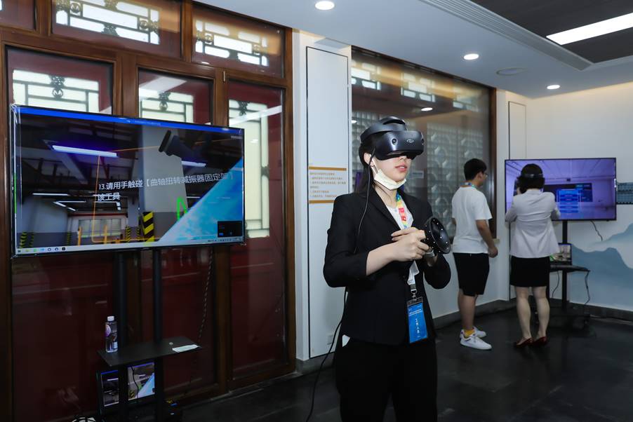 本次启动仪式设有虚拟现实(VR)课程体验区,引入VR就业技能培训课程的展示体验。在项目中引入VR技术,一方面是为了顺应第四次工业革命的技术趋势;另一方面是由于一些特殊地区面临教育物资缺乏、教具不足的问题。VR技术是一种高沉浸体验的表现形式,不仅表现力强,真实度高,而且极大节省了学校对硬件与硬件维护的成本。VR课堂打破了传统的教育信息化教学模式,是各种教学实训室的数字化和虚拟化的结合。同时,主办方还设立了产业帮扶与乡村振兴展区,对来自灵寿、德格、延安、义乌、砀山等地方和平台的扶农助农产品进行展示。