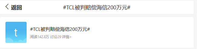目前,针对上述所提到的TCL“赔偿”一事,海信方表示:将向法院申请强制执行。