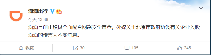 滴滴:外媒关于北京市政府协调有关企业入股滴滴的传言为不实消息 李楠 • 2021年9月4日 18:33 • 出行 速途网9月4日消息(报道:李楠)今日,针对北京市政府协调有关企业入股滴滴的传言,滴滴发布声明称,该消息为不实消息。 同时滴滴表示, 目前正积极全面配合网络安全审查。 赞 (0) 李楠 0 生成海报 新农村里的老房子:抖音“村落守护人”计划,留住家乡的记忆 上一篇 2021年9月4日 18:30 VIP陪练领跑在线乐器陪练赛道,让每一次练琴都有价值 下一篇 2021年9月5日 10:57