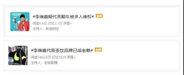 此事一经传出,短时间内便引起了众多网友的热议,不仅关联了#李维嘉疑代言翻车被多人维权#、#李维嘉代言茶饮品牌已成老赖#,#明星代言翻车要不要担责#等多个话题,微博评论也呈现两极分化。支持的一方是认为该代言人过于倒霉,摊上了这么一个品牌。还有是认为做生意就是有赚有赔,不应该把所有责任都怪在代言人上。反对的一方则觉得,许多加盟商就是冲着代言人的名气,才敢于把钱投进去。如今,“快乐方程式”跑路,代言人理应承担连带责任。