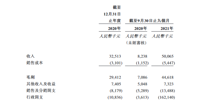 据招股书显示:2020年,博动医疗收入、毛利及全年亏损分别达到3251.3万元、2941.2万元及93.4万元,毛利率为90.5%。2021年前九个月,博动医疗的收入、毛利及期内亏损分别为5006.5万元、 4461.8万元及2.04亿元,毛利率为89.1%。
