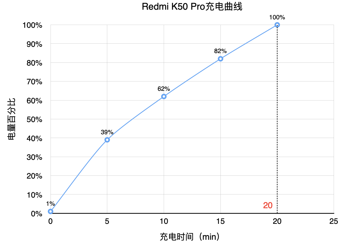实测使用包装内的120W原装充电套装为K50 Pro充电,1-100%仅需要20分钟。