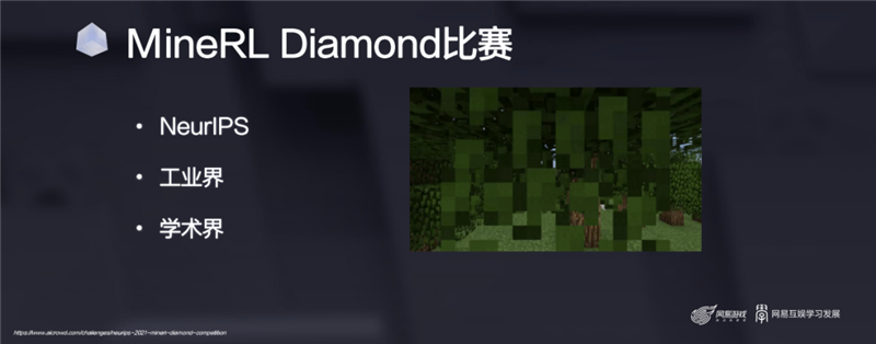 我们也挑战了更难的游戏,参加了NeurIPS举办的MineRL Diamond比赛,这个比赛已经举办第三届,每一次都吸引了大量工业界和学术界的强队参加。这个比赛的目的就是在MineCraft的环境中,从一开始用一把斧头开始采集木头资源,再通过木头资源去做下一步的工具,最后,要挖掘到钻石。这个比赛举办以来,基本上没有队伍能在这种环境里面从中挖到了钻石。比赛有很多方案,大多数队伍都选择了基于玩家数据去进行训练,如基于玩家数据进行模仿学习,或者在模仿学习组上再进行强化学习。