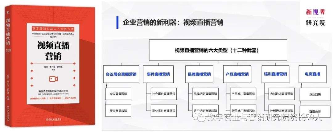 直播营销的类型非常多元,包含会议展会直播营销、品牌直播营销、产品直播营销、培训直播营销等六大类12小类,而直播电商(包含:直播带货、企业直播)只是其中一大类。因此,企业营销必须要全面了解直播营销的多种类型,才能做好直播。这些内容,在即将出版的《视频直播营销》新书中,有详细介绍。