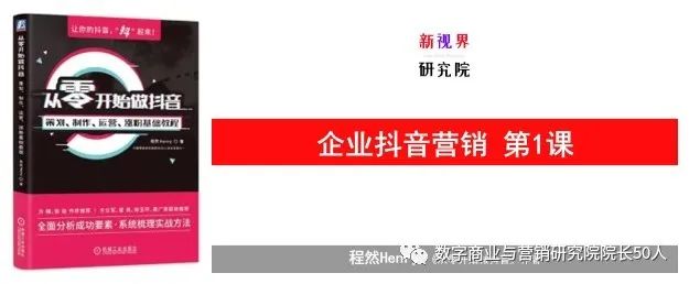 新视界研究院长期与知名高校、顶尖企业及出版社合作,以图书、教材方式,推进视频营销和商业领域的创新发展,已经出版的图书有《从零开始做抖音》、《聚变式创新》和《视频直播营销》。