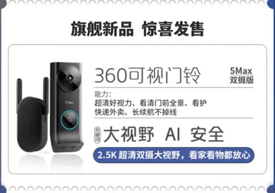 日前,360可视门铃5Max双摄版旗舰新品发售进入倒计时。这是360首款双摄可视门铃,2.5K超清双摄大视野,超长续航不掉线,看家看物都放心,还能看护门外的快递和外卖。