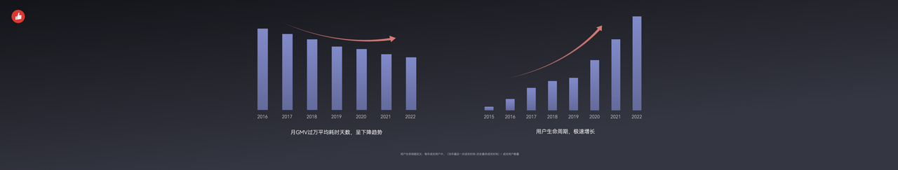 相比2016年,2022年有赞新商家月均GMV过万的平均周期缩短了20.5天,有赞商家的消费者留存时长从61天提升至601天,近三年每年增长超过100天,这标志着有赞为商家创造价值的效率也在不断提升。