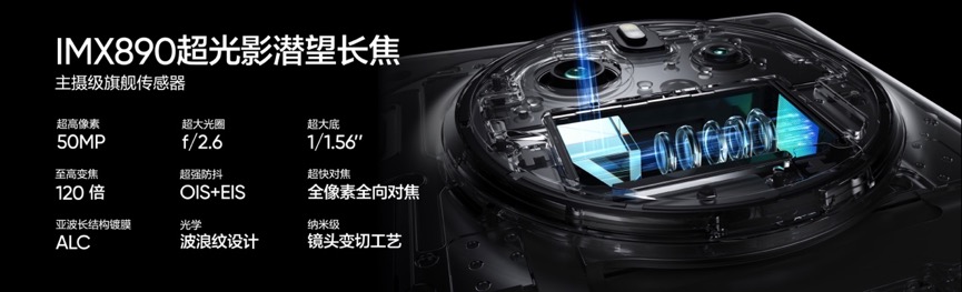 长焦已逐渐成为决定影像体验的关键,真我GT5 Pro搭载同档唯一IMX890超光影潜望长焦,以主摄级的超高规格,挑战行业最强暗光长焦。真我还与高通、虹软三方强强联合,在光学硬件、芯片算力、影像算法三大方面进行深度联调,带来行业首发的超芯长焦影像系统,实现了长焦影像在超高画质、超强性能、超优算法上的全面升级,也让真我GT5 Pro在长焦影像上一骑绝尘。
