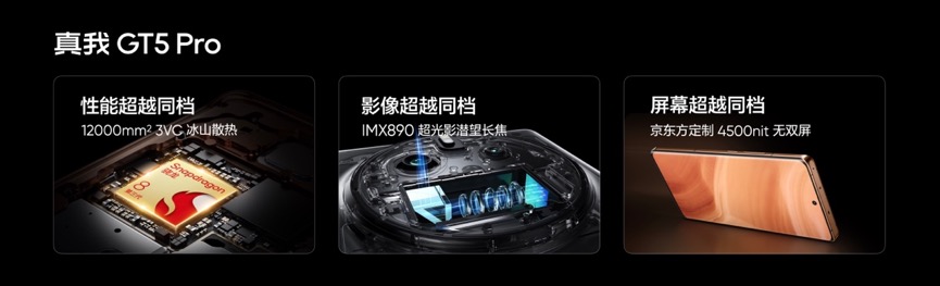 不仅如此,真我GT5 Pro还采用独家的超硬铝金属中框,抗跌落性能提升40%,强度超越钛合金。不仅呈现曲中有直的设计美感,更保持了功能上的实用性与耐用性,在细节之处彰显品质。