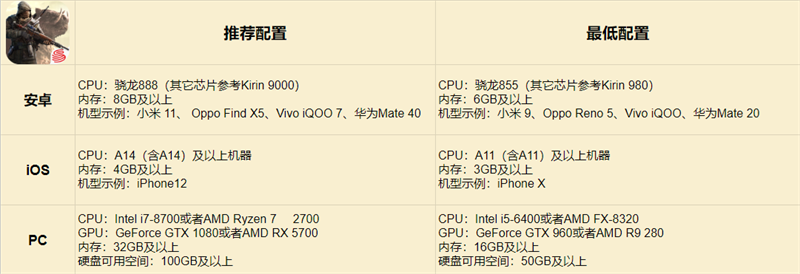 针对配置要求,官方在开测前夕便公开了启程测试最低兼容设备:安卓骁龙855机型,其它芯片参考Kirin 980,内存最低6GB;iOS端iPhone X起,内存最低3GB。至于PC端,最低配置为Intel i5-6400或AMD FX-8320,内存至少16GB。 为了保证最佳游戏体验,建议流浪者按照官方推荐配置进入游戏。