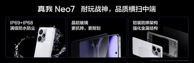 同时,真我Neo7首发铠装防摔架构,升级了机身四角的强化设计、内部缓冲材料填充以及手机主板上的高强度金属,更大程度提升了抗造的性能。
