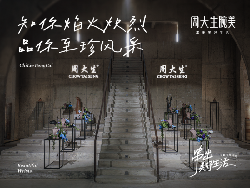 此次大秀,无论在场景还是主题产品,都经过精心设计。达到秀场外,就会被巨型青花纸鸢吸引;内部场景上,利用丙丁柴窑内部对称弧顶的设计,细长的天光自屋顶中央及墙面洒落,光线汇集指向窑炉中轴,光束随时间在柴窑内部移动,独特的光影效果点缀了阶梯两侧的周大生展品。相应灵感的珠宝展品陈列其中,让人提前感受到大秀的中式传统美学。