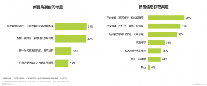 多数消费者依赖电商平台推荐系统关注上新信息,社交媒体、官网也成为重要的资讯来源。