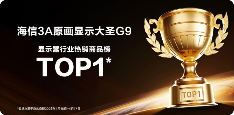 以前游戏玩家谈起3A大作最佳显示器,总有很多产品可以讨论。但直到4月16日,海信显示器本年度旗舰之作——大圣G9正式开售并一跃成为显示器行业热销商品榜TOP1,这个问题就不再有悬念了。