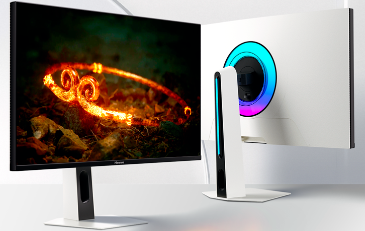 在外观设计上,大圣G9延续了海信大圣系列极具辨识度的冰川白电竞外观设计和人体工学支架,支持升降,俯仰,旋转等多角度调节,让战术观摩与多人协作变得随心所欲。75mm壁挂孔位与小巧底座的组合,则为桌面留出更多外设空间,搭配氛围呼吸灯,堪称当代电竞房的美学担当。