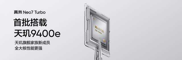 真我Neo7 Turbo首批搭载联发科天玑9400e旗舰芯,作为天玑9400家族的最新成员,其采用全大核架构,包含 4 个 Cortex-X4 超大核,主频至高可达 3.4GHz,以及 4 个主频为 2.0GHz 的Cortex-A720 大核,GPU 方面,搭载旗舰 12 核 Arm Immortalis-G720,性能表现极为出色。经测试,安兔兔跑分高达245万+,领跑同档产品。