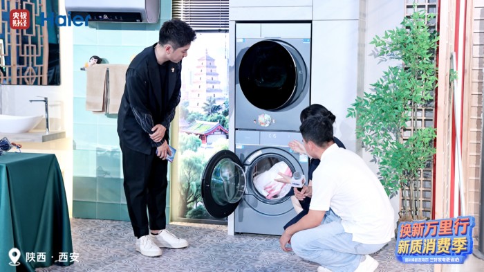 洗护无压力:又快又干净、烘出阳光味。体验官现场吐槽,西安动不动就上40℃,衣服一天一换都嫌不够勤。搭载“AI直驱快翻洗”科技的海尔洗衣机,29分钟就能洗净四件套,省时一半、省水一半,还能放心洗汉服、真丝。配套干衣机不仅烘得又干又透,还能模拟阳光照射除菌除螨,为用户实现“晒衣”自由。
