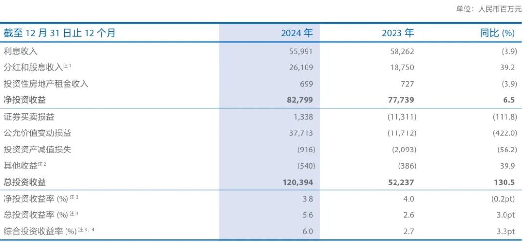 这主要得益于2024年股市与债市的回暖,使中国太保的总投资收益率为5.6%,同比提升3个百分点,是推动业绩增长的核心动力。同期,中国太保的综合投资收益率为6%,同比提升3.3个百分点。