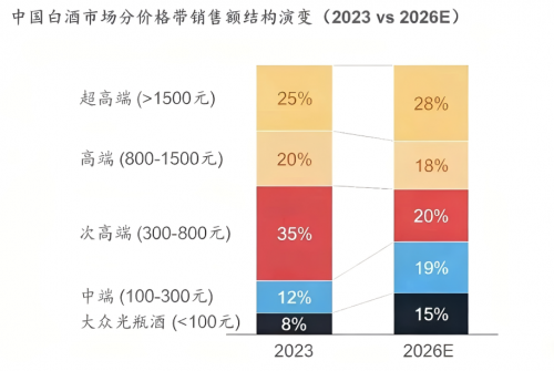 在整体消费环境承压的背景下,行业结构性分化趋势愈发显著,成为当前发展最突出的特征。高端酒水凭借强品牌壁垒展现韧性,大众酒水依托性价比稳住基本盘,而次高端酒水则陷入量价齐跌的困境。这种显著的结构性分化,也在倒逼着行业加速渠道变革与营销创新。
