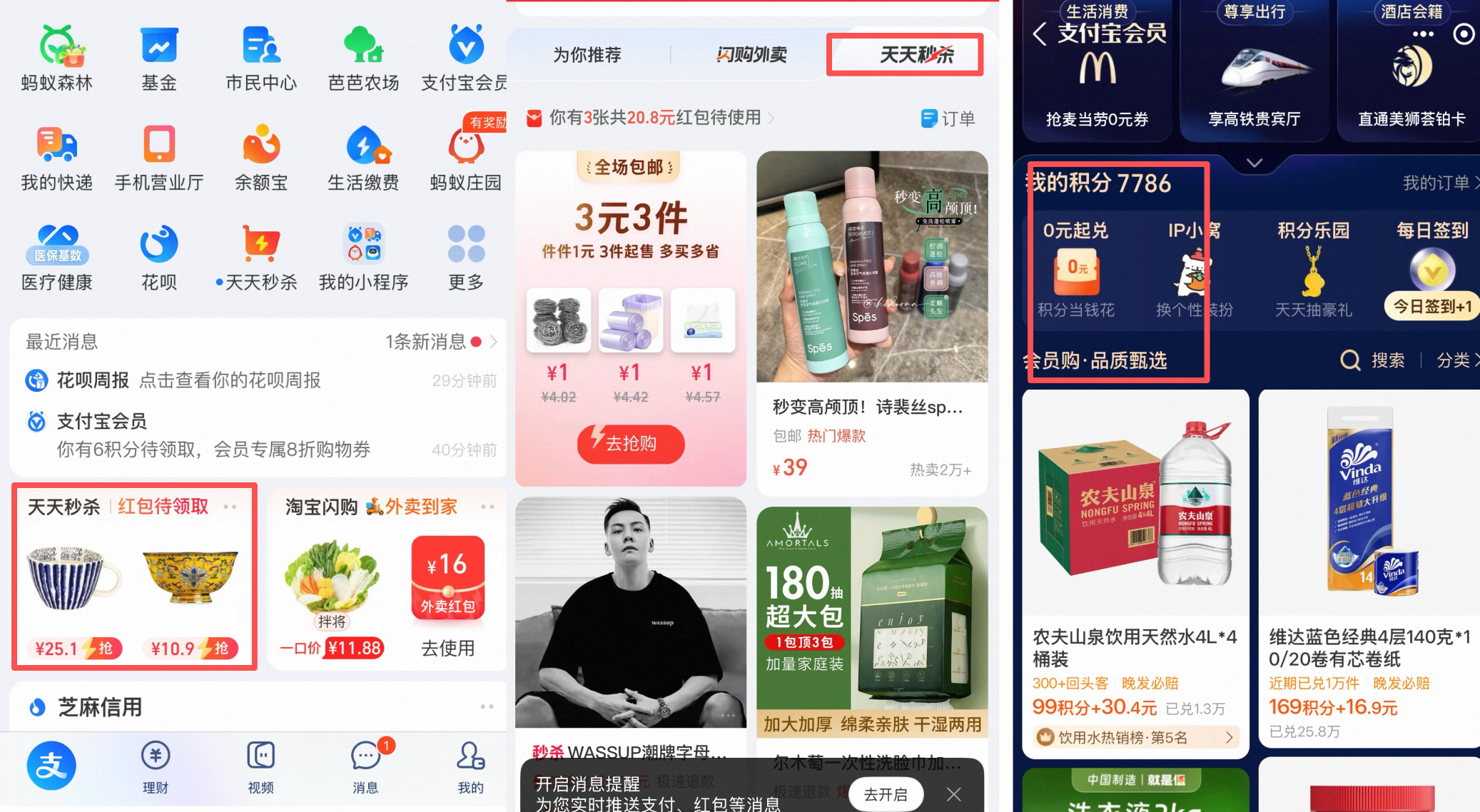 图说:“天天秒杀”位于支付宝APP 端内首页,是支付宝核心助推的电商交易场景之一。