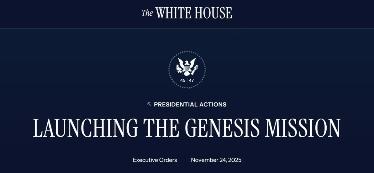 速途网讯 据央视新闻报道,当地时间11月24日,美国总统特朗普签署了一项名为“创世纪计划”(Genesis Mission)的行政命令,这是美国在人工智能领域的最新重大举措。