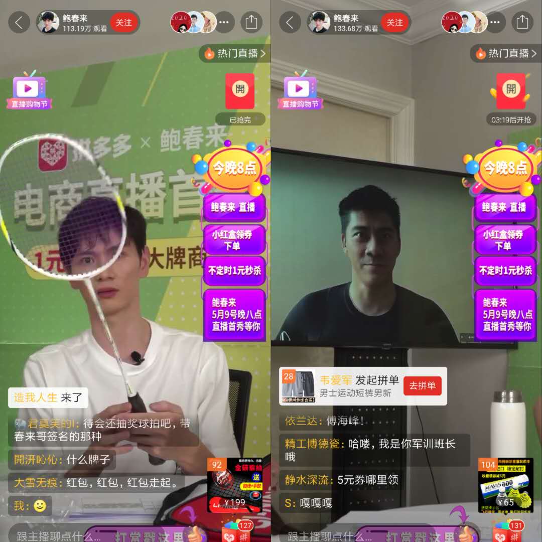 “今天是我的拼多多首播,对我来说是一个新挑战。作为一个前羽毛球运动员,我也想把自己多年的运动经验分享给大家。”5月9日晚,鲍春来首先介绍了此行目的:疫情将要过去,夏天马上到来,为消费者推荐一些好用的运动产品。