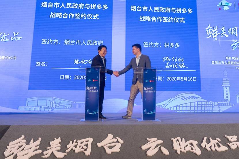 5月16日,烟台市副市长张代令和11位市县区长一起走进直播间,在拼多多平台上推荐烟台特色商品和城市文化。活动当天,“烟台优品馆”在拼多多平台正式上线。一天前,佛山市副市长乔羽与拼多多联合创始人达达,携手美的、格兰仕、海天味业等八大佛山代表企业,共同开启佛山站“总裁直播”,佛山优品馆正式上线。