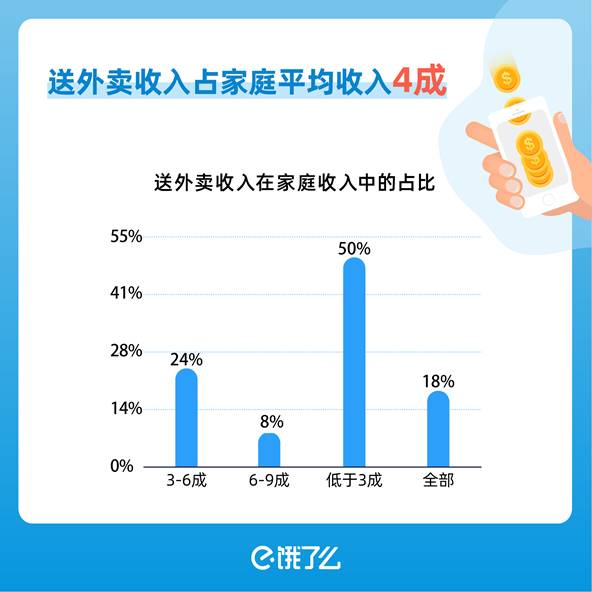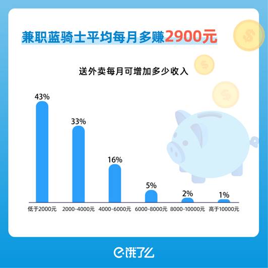 像童先生这样的蓝骑士还有很多。16%兼职蓝骑士每月多赚4000-6000元,8%平均每月多赚6000元以上。26%的骑士家庭,送外卖收入占到家庭总收入的的6成以上。