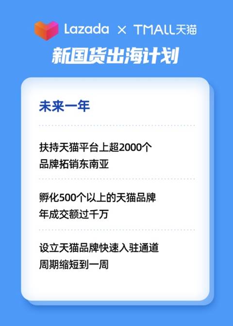 速途网8月19日消息(报道:李楠)今日,Lazada联合天猫发布“新国货出海计划”,未来一年将扶持天猫平台上超2000个品牌拓销东南亚,孵化500个以上的品牌年成交过千万。