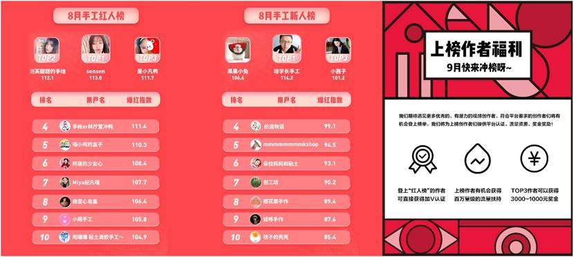 近日,小红书发布8月手工创作者荣誉榜,以当月涨粉量、粉丝互动量、视频播放量为核心指标进行排序,选出了最受用户欢迎的10位“红人”和10位“新人”。 其中,刚入驻3个月不到的创作者 “培学长手工”靠折纸吸粉12万。