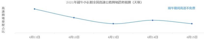 今年端午节假期为6月12日(周六)至14日(周一)放假3天,全国高速路网将不实行小客车免费通行。根据《报告》预测,受周五晚高峰叠加影响,6月11日,即端午假期前一日,全国高速或将迎来出程拥堵高峰。