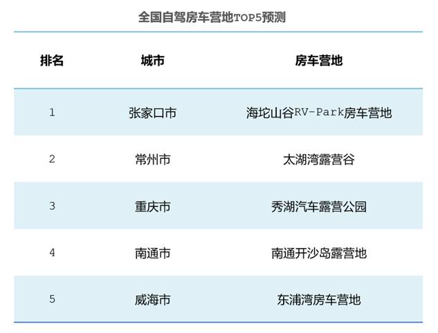 如果追求自在随心,随遇而安的出游方式,房车游或许是不二之选。报告显示,端午期间,全国自驾热门房车营地游中,张家口-海坨山谷RV-Park房车营地自驾热度最高,其次是常州-太湖湾露营谷及重庆-秀湖汽车露营公园等。