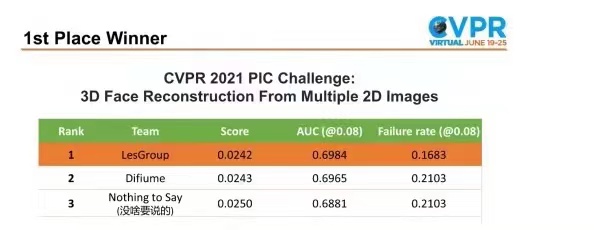 近日,第三十四届国际计算机视觉顶级会议CVPR 2021 (Conference on Computer Vision and Pattern Recognition) 举办的多角度图片3D人脸重建竞赛公布了最终成绩,网易互娱AI Lab提出的多视角重建方案在所有评价指标上均排名第一,击败了来自OPPO研究院,虎牙AI Lab,清华大学,北京大学,中科院自动化所等企业和高校的246个计算机视觉团队,一举斩获大赛冠军。