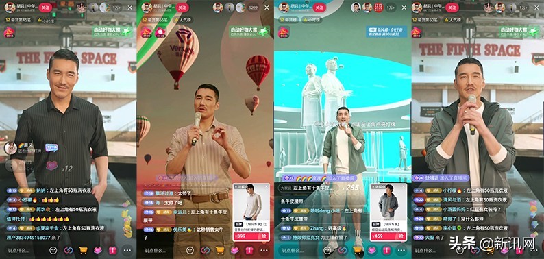 与直播间常规静态布景不同,红豆男装与胡兵合作的这场超级大秀运用360°环幕电影场景技术,采用了多时空互换背景,将T台在充满活力的篮球馆、沙漠中漂浮的热气球下、后现代感的美术馆雕像前之间随意切换。