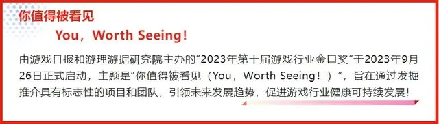 本届游戏行业金口奖评选在过去九届评选的基础上再造升级,将之打造成为游戏行业的一场持续三个月的阶段性合作交流盛会,这其中,不论是评委还是参选项目,都是游戏行业历史发展中不可或缺的部分,都是值得被看见和记录的一份子。